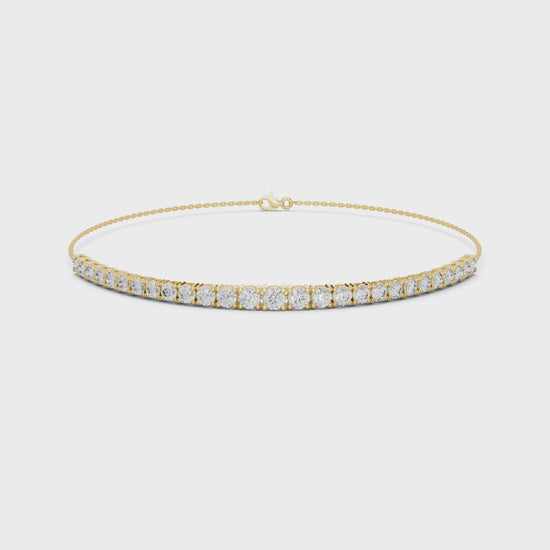 Each diamond is precision-set to maximise light exposure, creating a seamless shimmer that feels understated yet undeniably luxurious. The adjustable chain closure adds versatility, making it ideal for everyday refinement or evening sophistication.