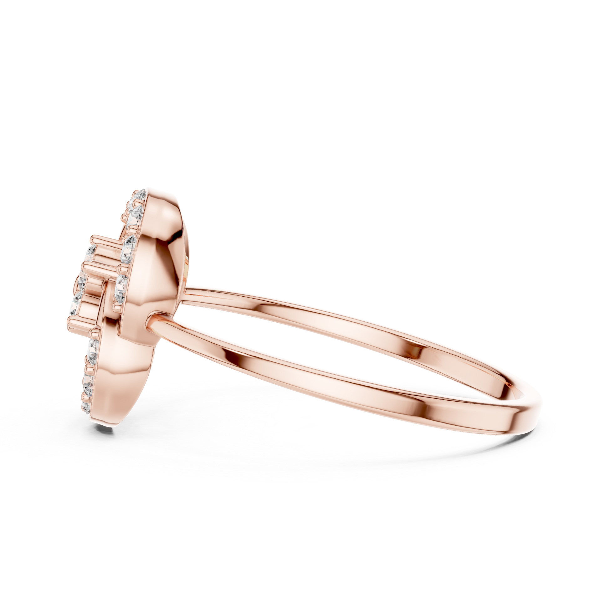 The Eternal Bloom Diamond Ring features an intertwined floral-inspired design, where circular forms flow seamlessly around a radiant cluster of lab-grown diamonds. The balanced symmetry and soft curves create a timeless silhouette—romantic, refined, and beautifully luminous from every angle.