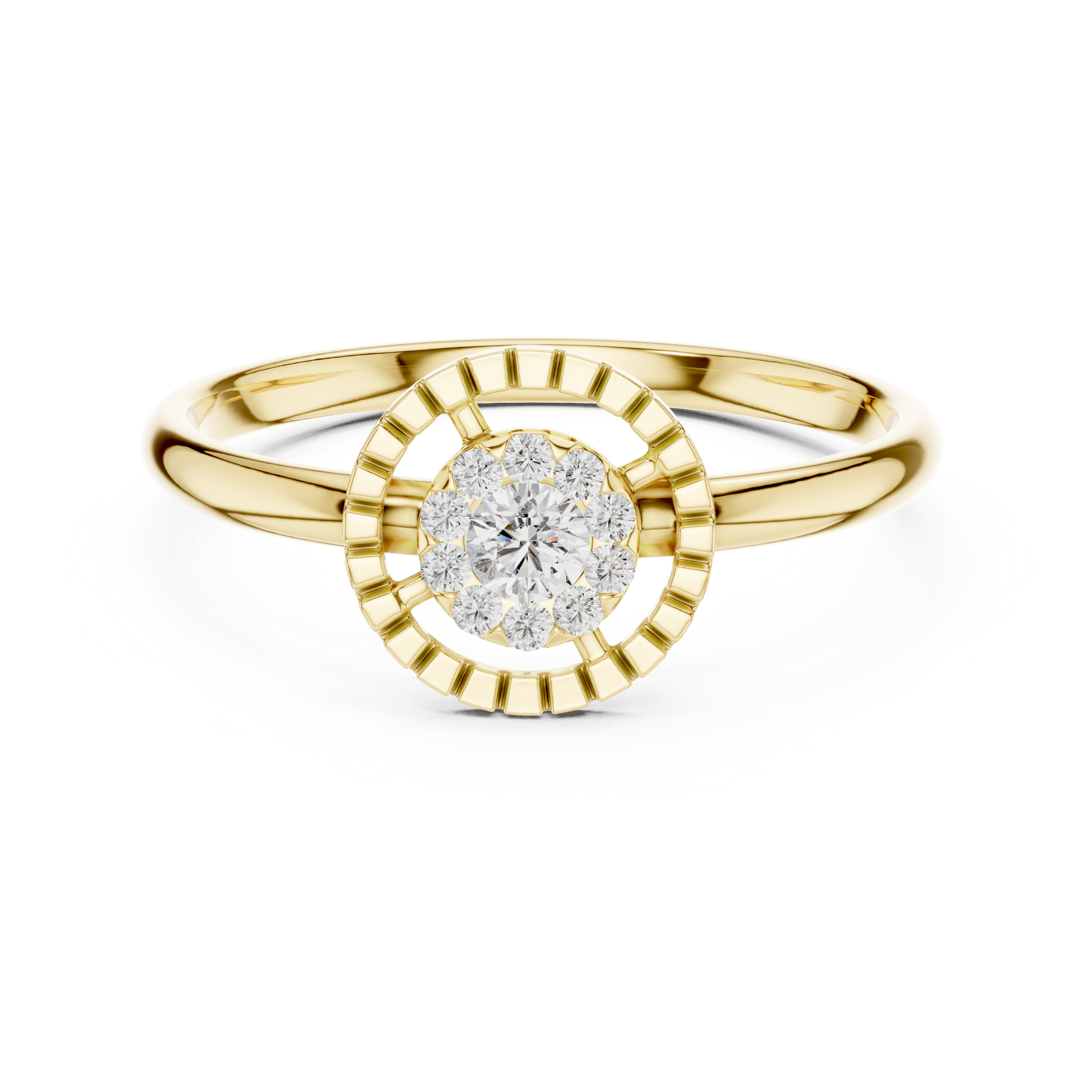 The Halo Radiance Diamond Ring features a luminous cluster of lab-grown diamonds embraced by a sculpted circular halo, creating a refined balance of brilliance and symmetry. Clean lines and a soft glow make this design effortlessly elegant and endlessly wearable.