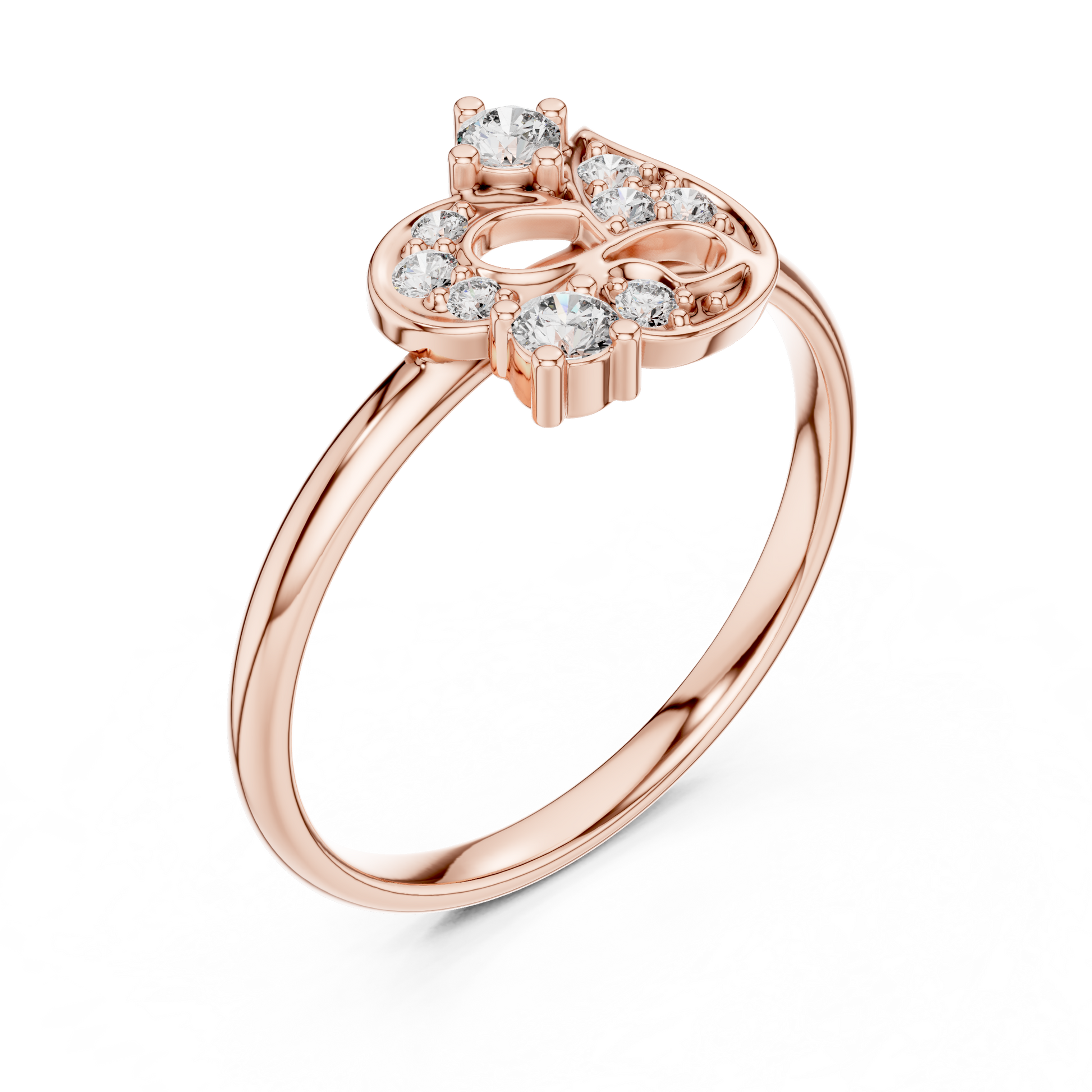 The Infinity Bloom Ring showcases an elegant interplay of curves and geometry, brought to life with a constellation of lab-grown diamonds. The fluid, sculptural design creates a sense of continuous motion—soft yet striking—catching light with every movement.