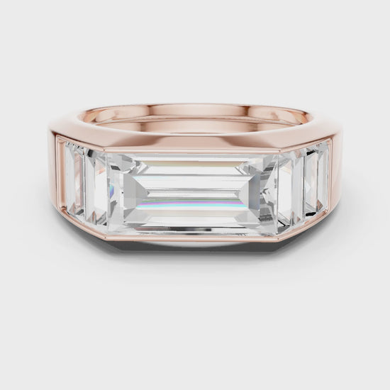 This exceptional ring is defined by a striking 2.30 ct emerald-cut lab-grown diamond, set seamlessly into a bold, architectural frame. The elongated step-cut facets create a hall-of-mirrors effect, delivering controlled brilliance with a refined, powerful character. Strong sculpted shoulders rise confidently toward the centre stone, forming a clean, masculine silhouette that balances modern luxury with timeless authority.