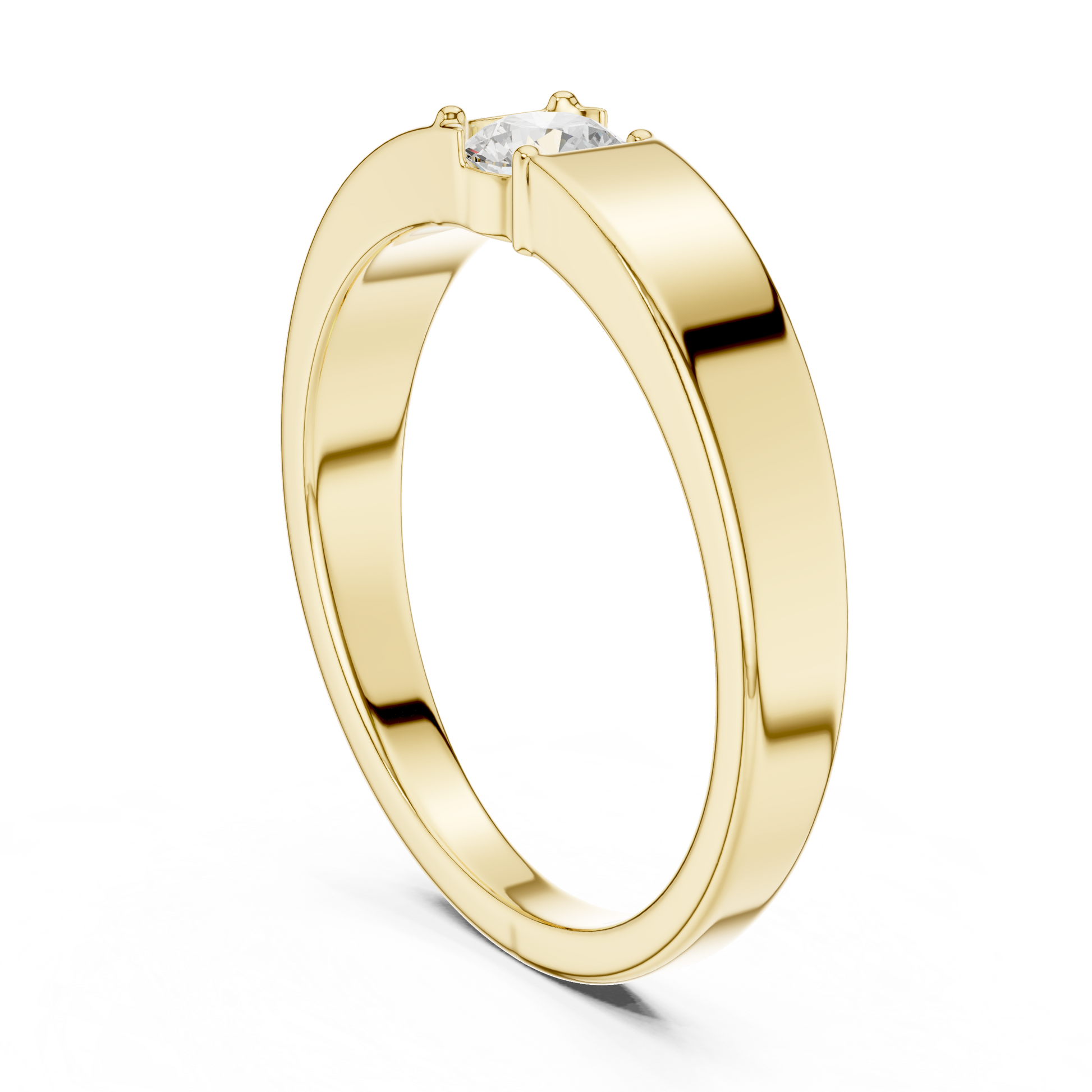 This elegant band features a precisely set 0.30 ct lab-grown diamond, gently elevated within a clean, minimalist mount that allows light to pass effortlessly through the stone. The smooth, uninterrupted metal surface enhances the diamond’s presence without distraction, creating a refined silhouette that feels timeless, modern, and versatile. Its balanced proportions make it ideal for everyday wear or subtle statement styling.
